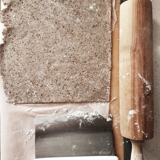 Bake for 8 - 12 minutes, watch it so it does not burn. The longer it bakes or the thinner it is rolled out, the crunchier the cracker