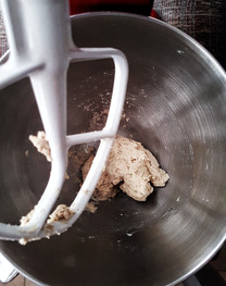 Make a well in the center of the dry ingredients and add the wet ingredients all at once. Mix or knead to form a somewhat smooth dough. The dough should be lightly sticky to the touch but firm and easy to handle.